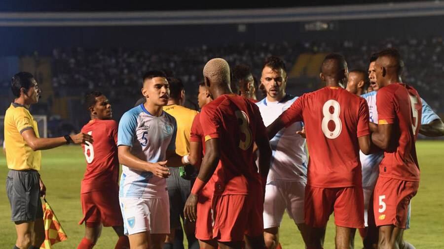 Cuando corrían los primeros 30 minutos del encuentro, y tras una disputa férrea entre Jairo Arreola y Alejandro Yearwood, se inició un conato de trifulca a un costado de la cancha del Doroteo Guamuch Flores.