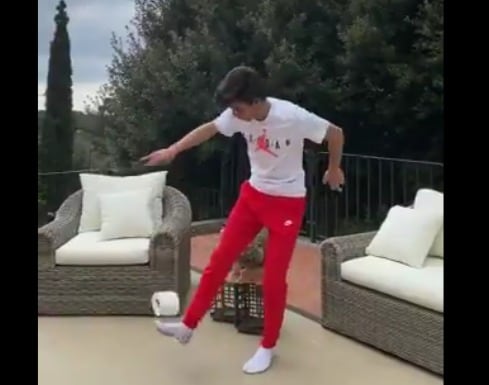 Uno de los primeros fue el futbolista canterano del Barcelona, Riqui Puig, quien sin zapatos, solamente con sus calcetines puestos, hizo el curioso reto.