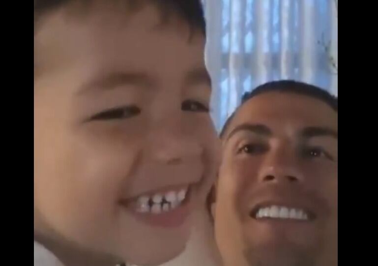 El astro portugués compartió un tierno momento junto a su hijo Mateo, a través de sus redes sociales donde le enseña su famoso "grito de guerra".