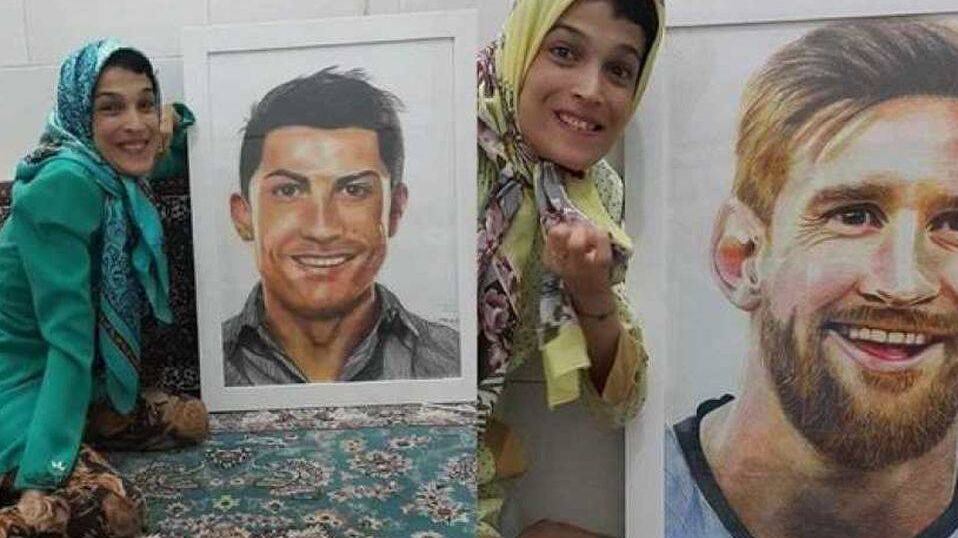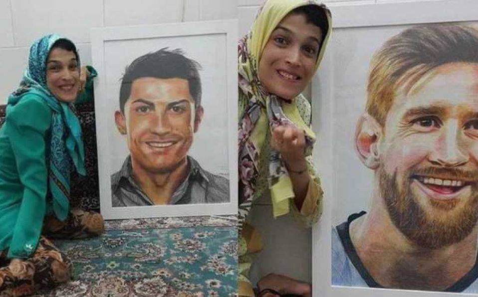 Las dificultades físicas que tiene no han sido una competa adversidad para Fateme Hamami, una artista nacida en Irán y que realiza retratos de futbolistas con sus pies.