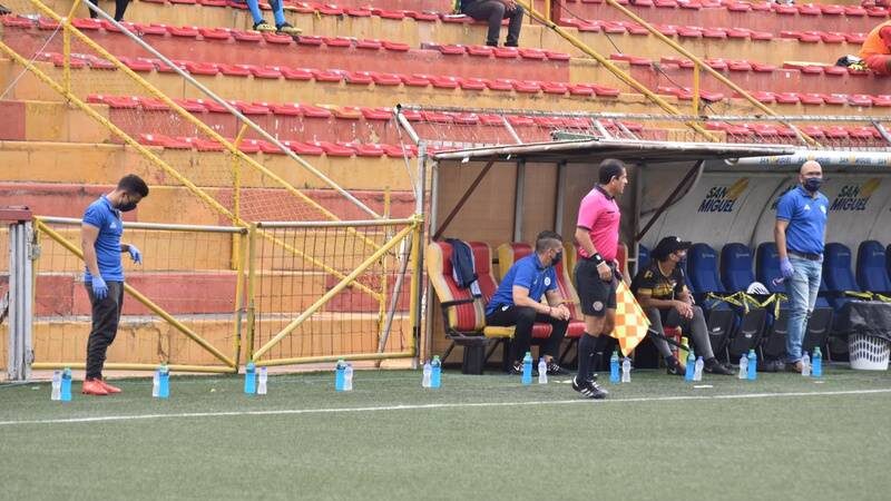 Los técnicos y jugadores de banca se sentaron distanciados entre sí y debieron mantenerse con cubrebocas.