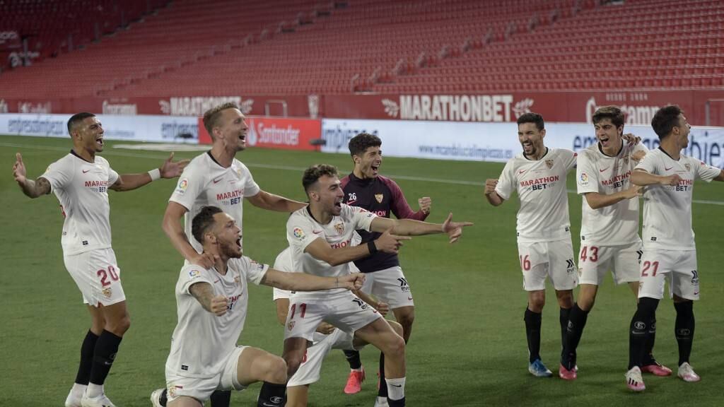 El Sevilla ganó 2-0 al Betis este jueves en el reinicio de la liga española en un estadio Sánchez-Pizjuán vacío, tres meses después de la suspensión del campeonato español por la pandemia de coronavirus.