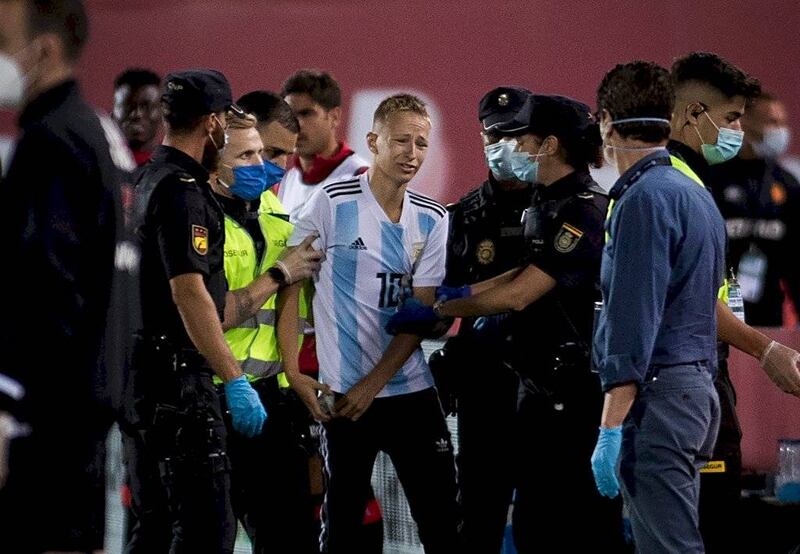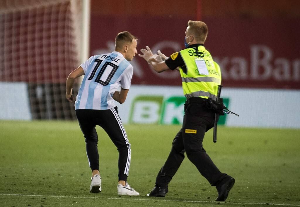 Un espontáneo, vestido con la camiseta de Argentina, logró burlar las medidas de seguridad para saltar a la gramilla, a pesar de que el encuentro se disputaba a puerta cerrada.