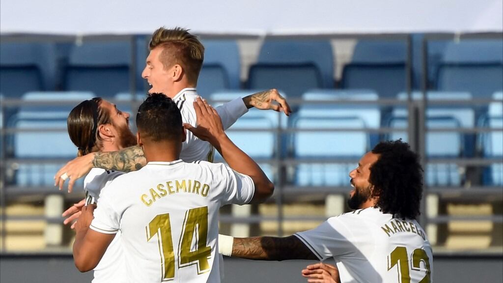 El Real Madrid ganó 3-1 al Éibar este domingo para seguir cerca del líder, el Barcelona, en la jornada 28 de LaLiga, la primera tras el parón por la pandemia, en el que el Atlético de Madrid empató 1-1 con el Athletic de Bilbao.