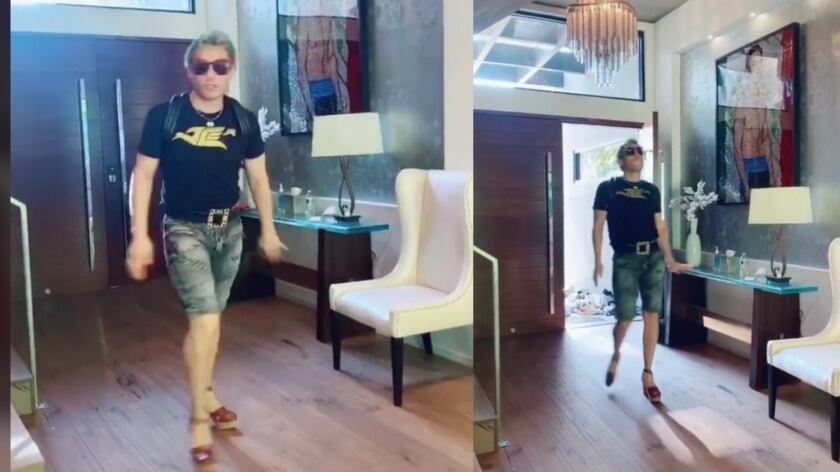 El hijo del campeón mexicano publicó un video en el que se le puede ver entrando a su casa en tacones y caminando por el pasillo.