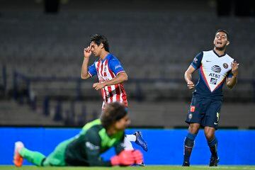 Las Águilas no estaban dispuestos a caer sin luchar y de inmediato respondieron el golpe con un desborde de Giovani dos Santos que mandó un servicio a segundo poste, donde Viñas de elevó y batió a Toño Rodríguez que nada pudo hacer.