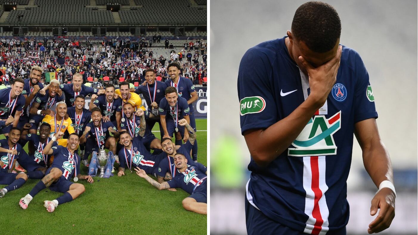 Tras revisar la jugada en vídeo, el árbitro expulsó a Perrin y Mbappé tuvo que abandonar el terreno de juego dando muestras de mucho dolor.