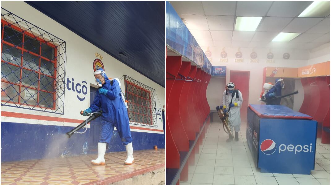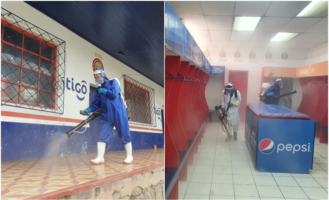 Siguiendo al pie de la letra los protocolos dados por el ministerio de salud, este miércoles se realizó la primera desinfección en las instalaciones del estadio Mario Camposeco.