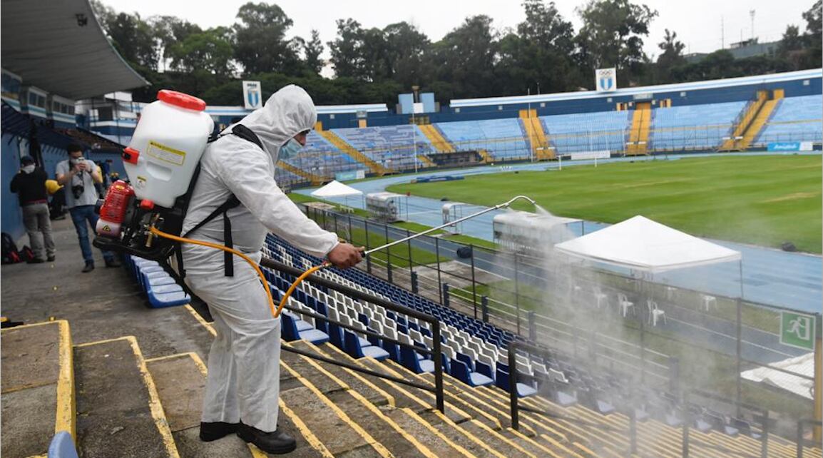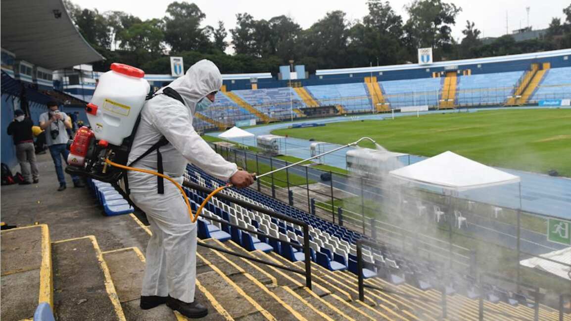 Además, de los toldos y áreas cercanas a la gramilla también fueron desinfectadas otras áreas del estadio, como el graderío, lugar en donde fueron ubicados los fotógrafos.
