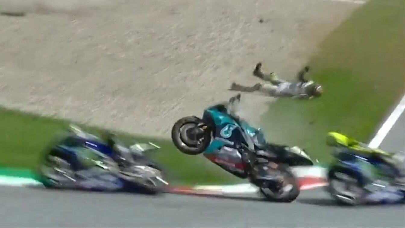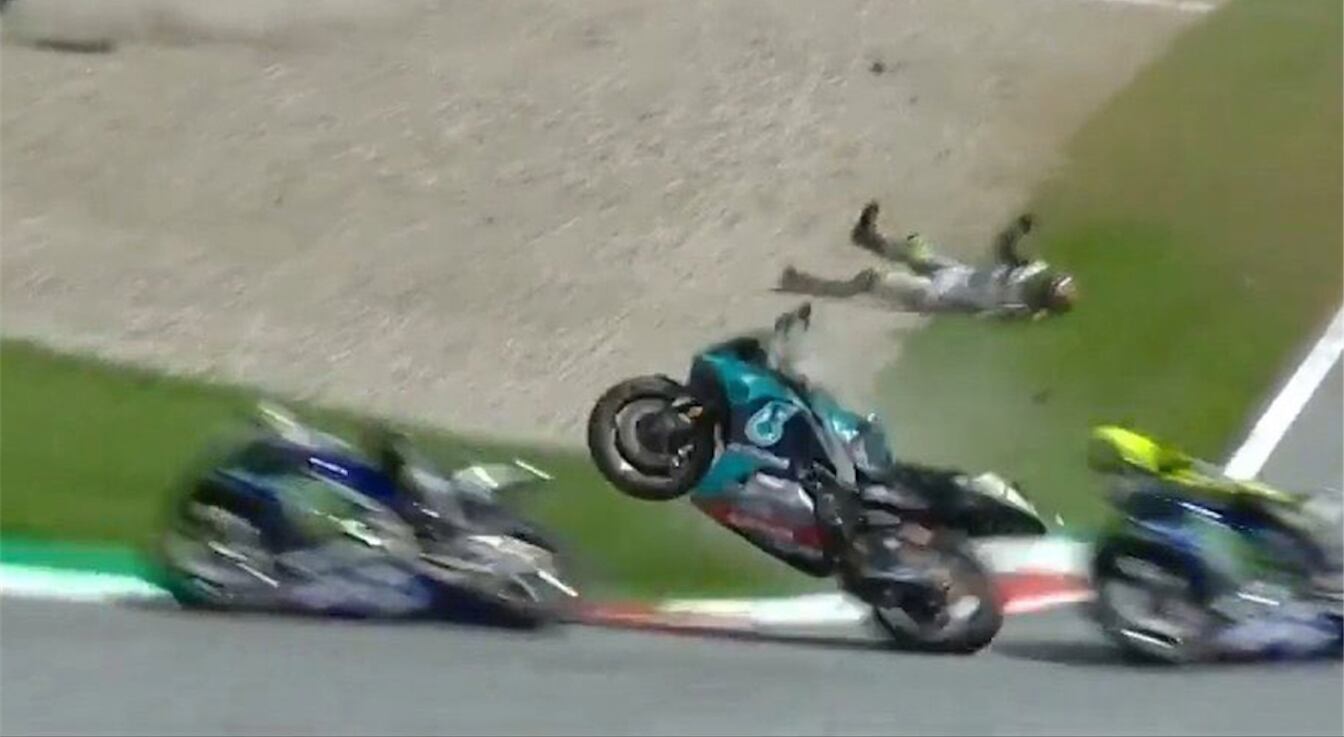 Sus motos se desintegraron al rebotar sobre la pista y pasar por delante de otros pilotos, como el veterano italiano Valentino Rossi, que las evitó por escasos centímetros.