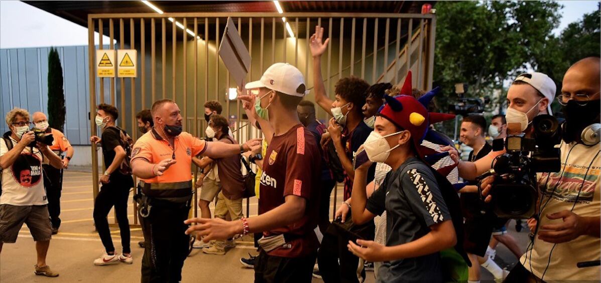 Este miércoles, decenas de aficionados se reunieron frente a las oficinas del estadio a gritos de “Bartomeu, dimisión” y “Messi quédate”, y por la fuerza ingresaron a las instalaciones.