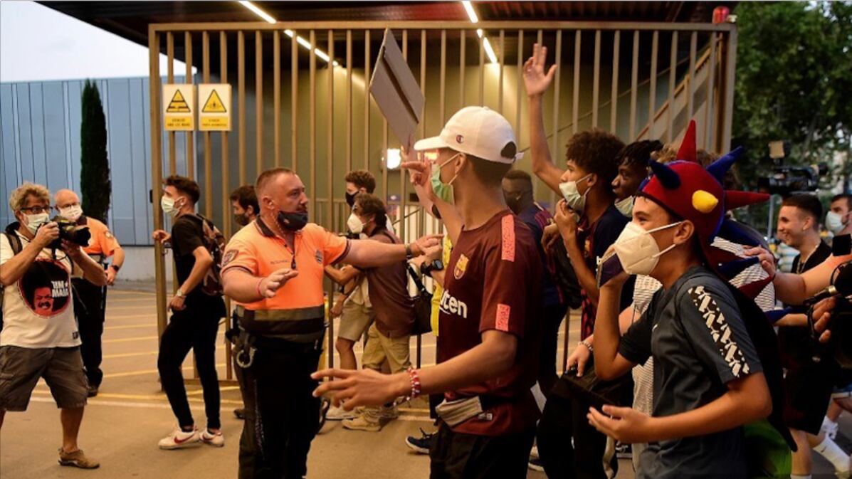 Este miércoles, decenas de aficionados se reunieron frente a las oficinas del estadio a gritos de “Bartomeu, dimisión” y “Messi quédate”, y por la fuerza ingresaron a las instalaciones.