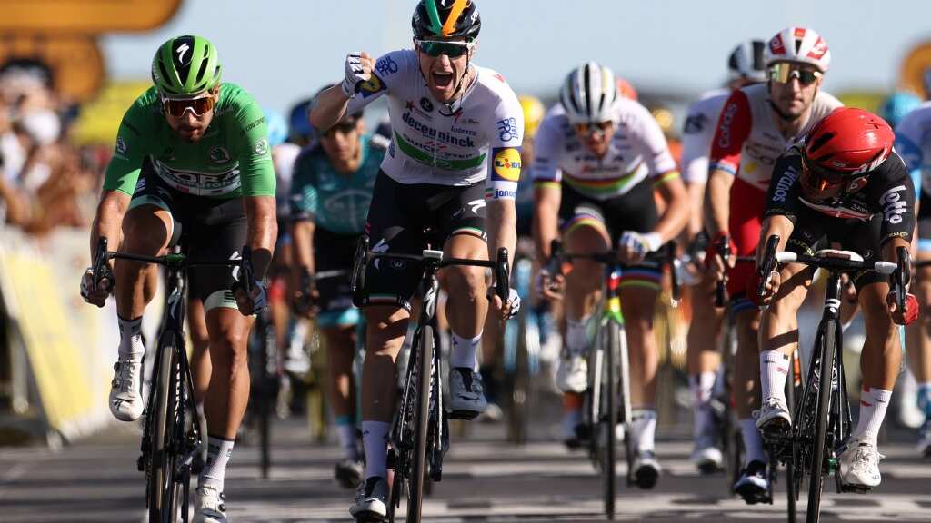 Bennett, al borde de las lágrimas al entrar en meta, superó en la meta al australiano Caleb Ewan y al eslovaco Peter Sagan, en Saint-Martin-de-Ré, tras una etapa llana en la que se corrió con muchos nervios, con varias caídas, entre la Isla de Oléron y la Isla de Ré.
