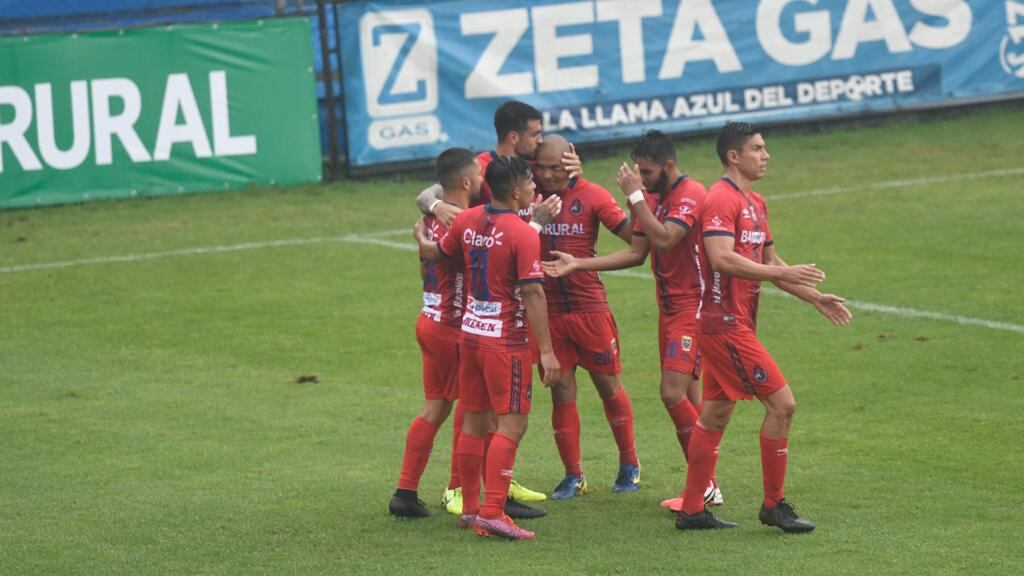 Ramiro Rocca puso el primer gol del partido cruzando el balón en el arco de Manuel Sosa, que poco pudo hacer ante el potente disparo del argentino.