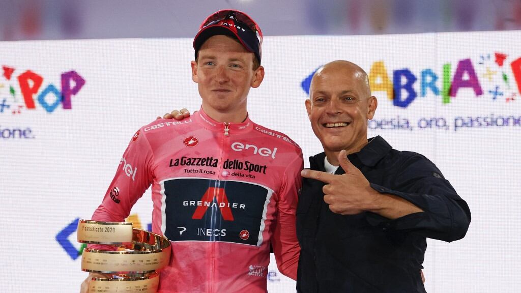Geoghegan Hart, que tapó las ausencias o desfallecimientos de los líderes del equipo Ineos, subió por primera vez al podio de una gran vuelta.