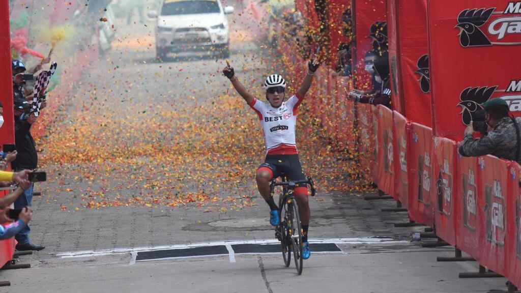 El ecuatoriano Cristian Pita de Ecuador Team Best PC, ganó la primera meta volante, en la altura del kilómetro 15, Salcajá, vuelta 2.