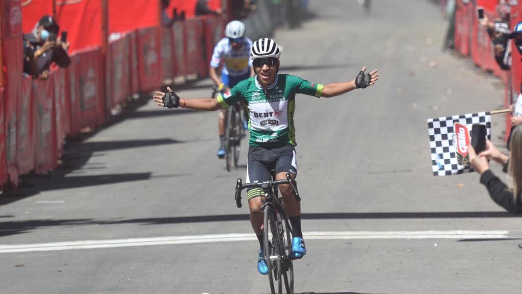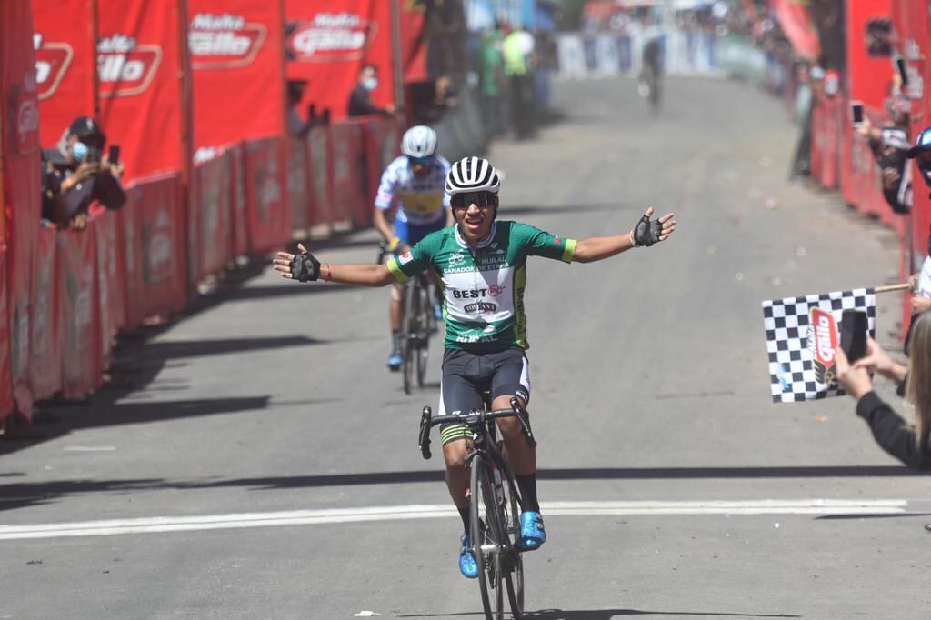 El ecuatoriano Byron Guamá del Team Best PC se llevó el cuarto premio de montaña, a la altura del Kilómetro 45, Pasarela de Los Encuentros.