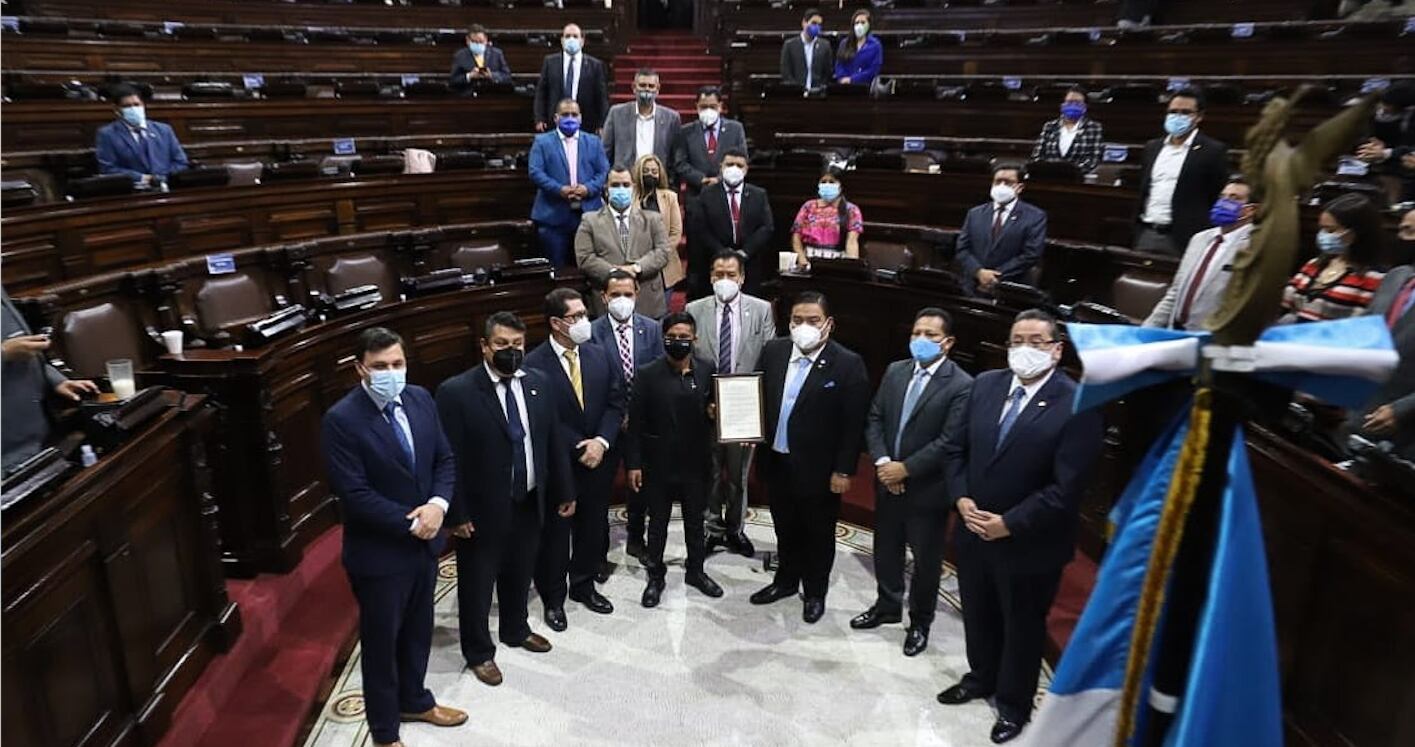 “Me siento muy orgulloso y para mí es una dicha poder estar acá. Nunca imaginé que al ganar la Vuelta a Guatemala estaría acá de pie en el Congreso. Me siento muy agradecido con Dios por esta oportunidad y con mi equipo”, expresó el ciclista de Hino-One, tras recibir el reconocimiento de manos de Allan Rodríguez, presidente del Congreso.