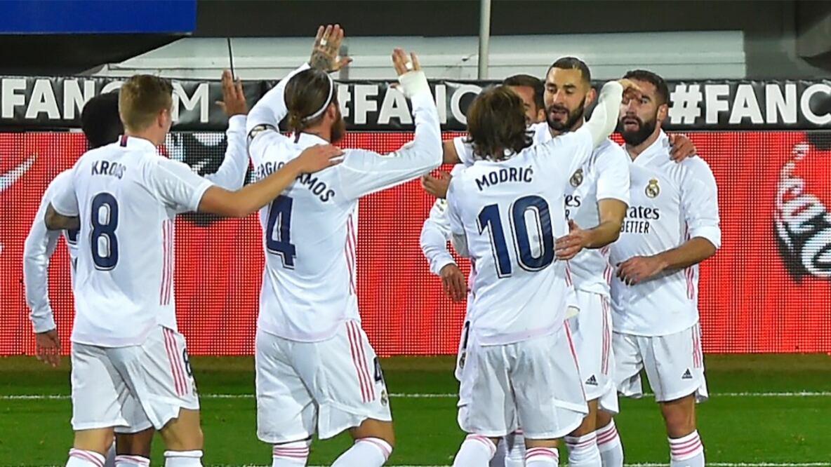 Karim Benzema (6) y Luka Modric (13) pusieron muy pronto las cosas de cara para el equipo visitante, aunque el Eibar logró reducir distancias mediado el primer tiempo con un gol de Kike García (28). El Madrid buscó insistentemente el tercero, que no llegaría hasta el tiempo añadido, por medio de Lucas Vázquez (90+2).