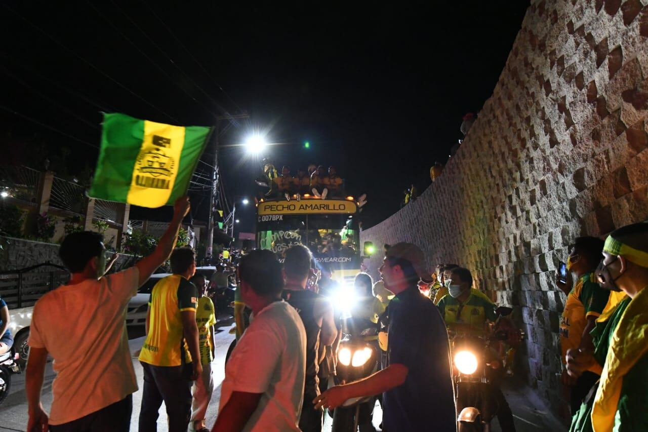 En su llegada a Guastatoya, la plantilla y cuerpo técnico del cuadro ‘Pecho Amarillo’ se topó con cientos de aficionados en las calles, que salieron a celebrar la obtención del tercer sol, tras dos años de espera.