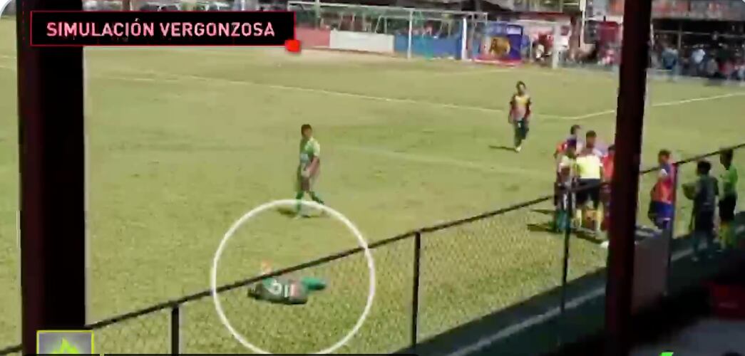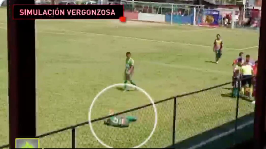 Fue tal su engaño, que la misma afición le gritaba al árbitro: “Está engañando”, “ridículo”, mientras otros jugadores lo rodeaban.