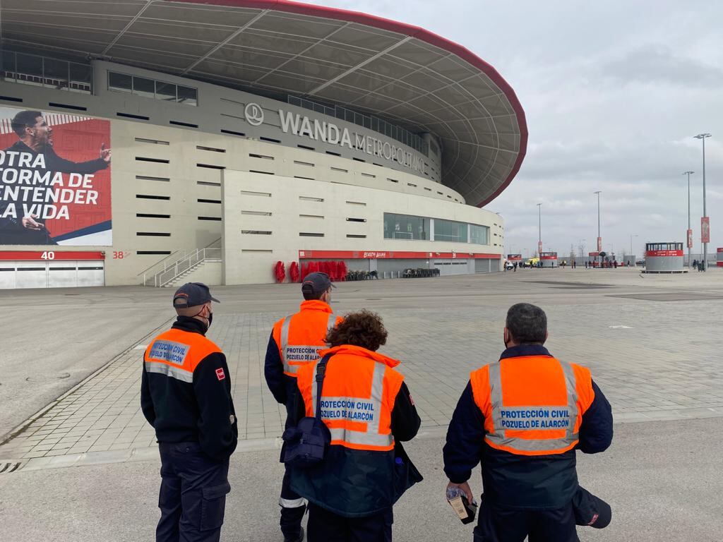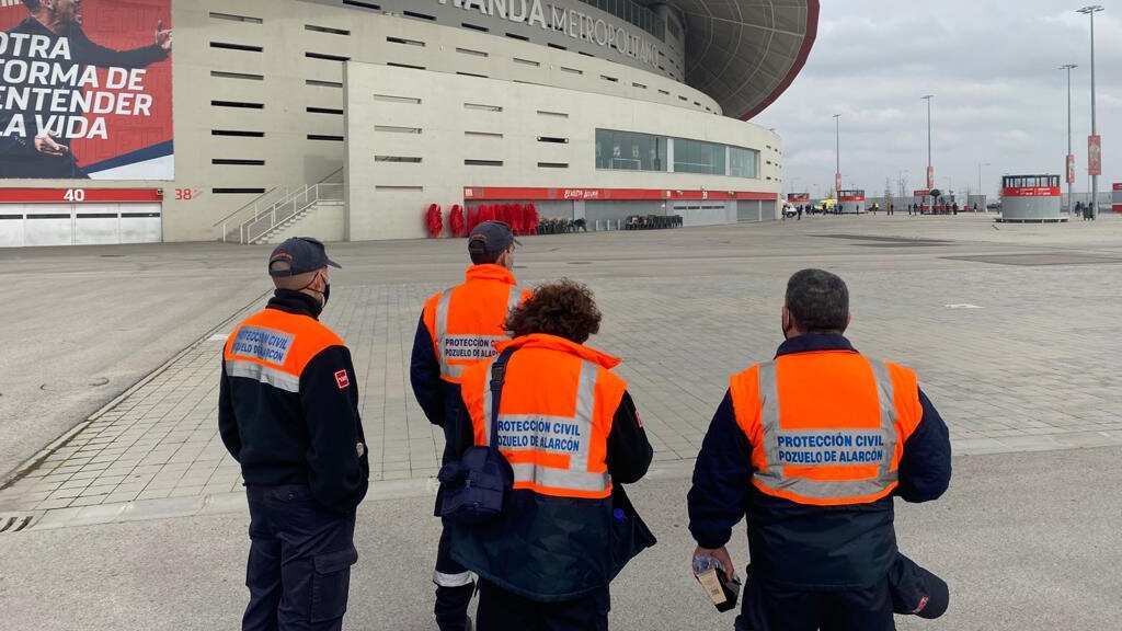 El estadio Wanda Metropolitano, hogar del Atlético de Madrid, se transformó este jueves en un gigantesco centro de vacunación, donde bomberos, policías y miembros de protección civil comenzaron a recibir dosis contra el COVID-19.