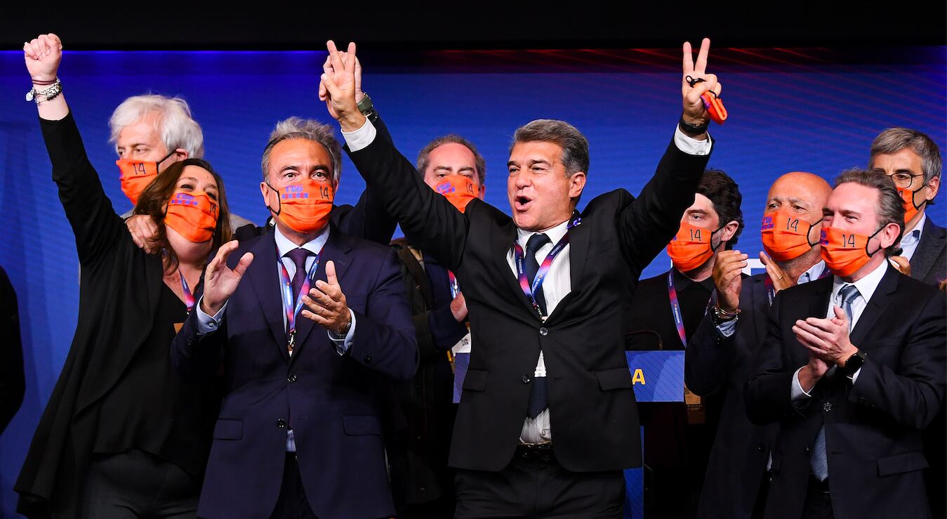 Laporta se hizo con la presidencia del Barcelona con el 54.2% de los votos, frente al 29.9% de Victor Font y el 8.58% de Toni Freixa con el 100% de los sufragios escrutados.