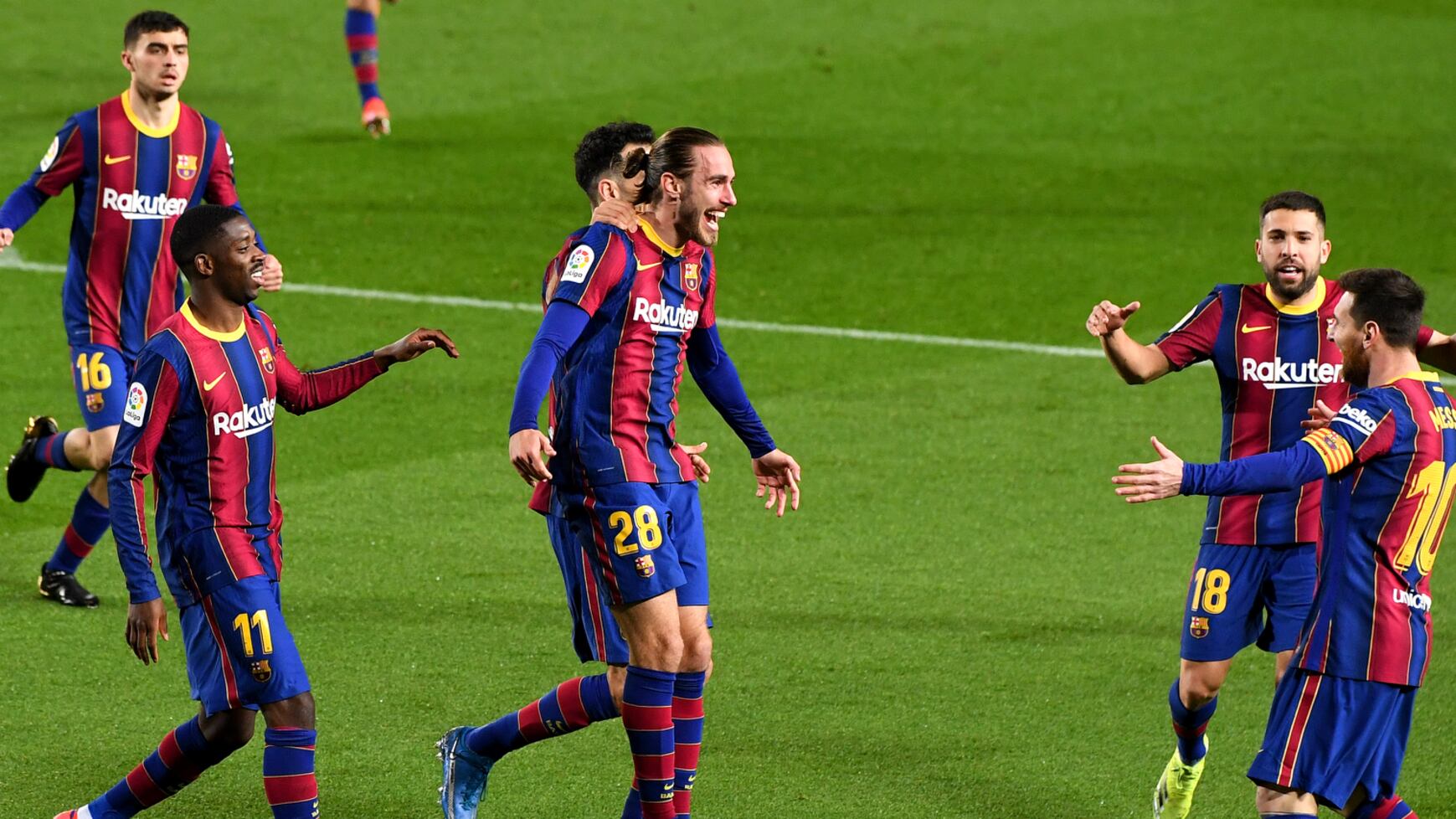 El francés Antoine Griezmann (35) y el defensa Óscar Mingueza (53) fueron los otros dos goleadores azulgranas, mientras que por el Huesca fue Rafa Mir el que marcó de penal el 2-1 con el que se llegó a la pausa.