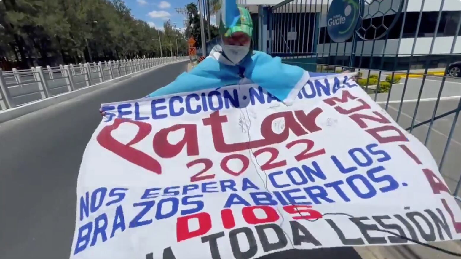 El fan llegó ataviado con los colores de la azul y blanco y con un gran rótulo en el que mostraba todo su apoyo a los jugadores a quienes les dijo que tienen todo su apoyo.