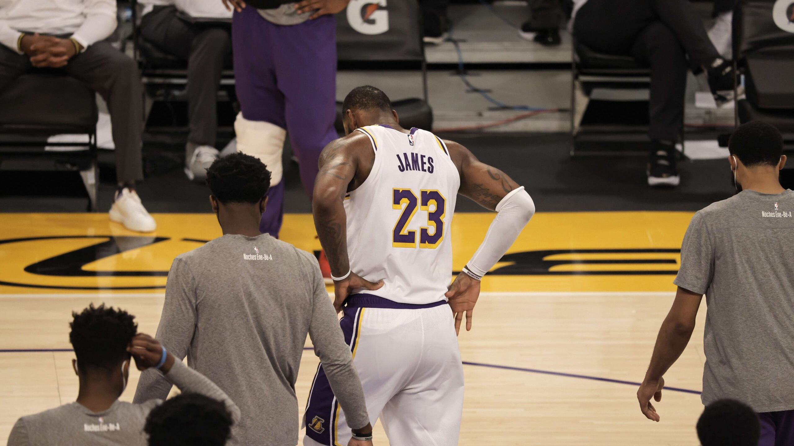James se lesionó cuando comenzaba el segundo cuarto en el Staples Center de Los Ángeles en una disputa de balón con Solomon Hill, cuyo cuerpo acabó chocando con la pierna derecha del alero de los Lakers.