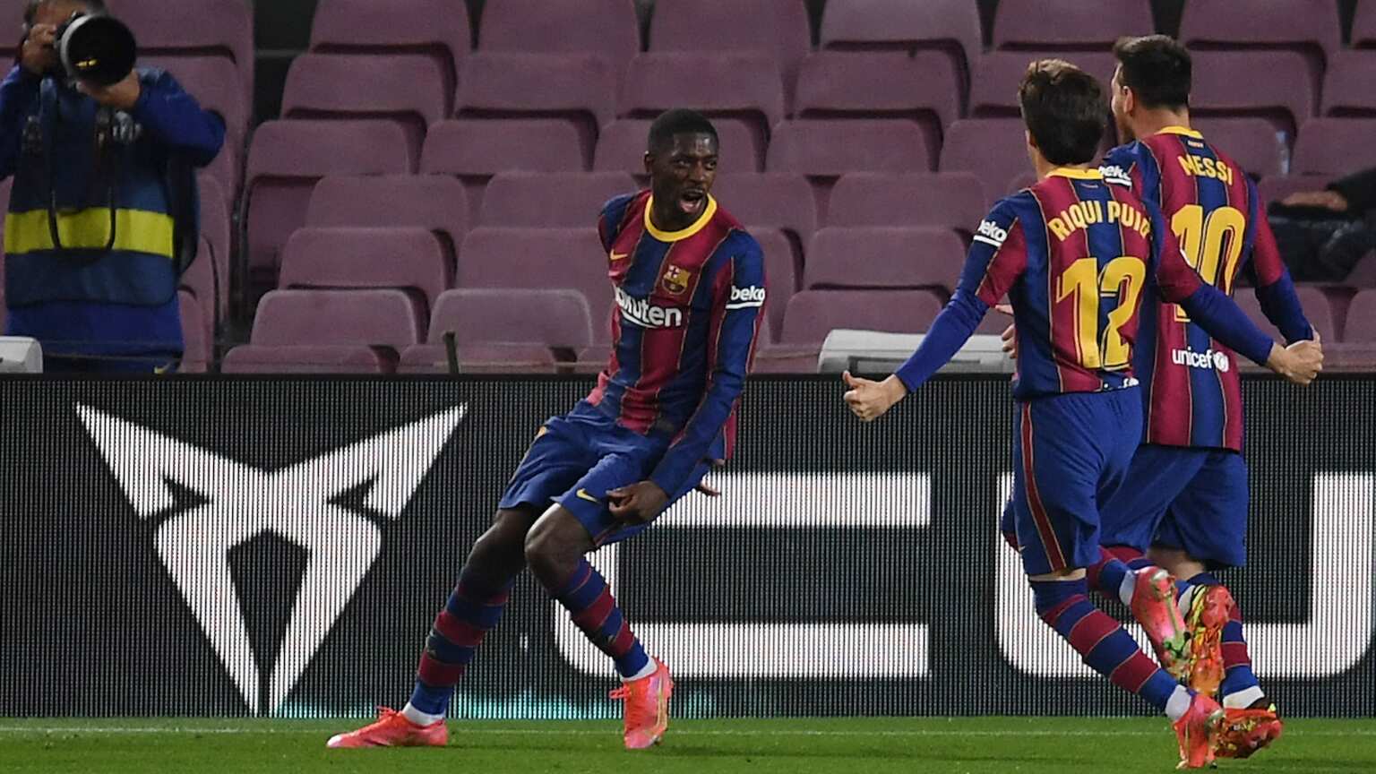 Tras un centro desde la derecha del holandés Frenkie de Jong, el uruguayo Ronald Araújo, con la cabeza, dejó la pelota en el segundo palo para que Dembélé anotara de volea el tanto de decidió el partido.