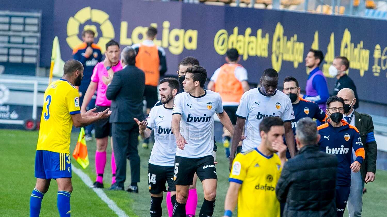 En el partido liguero que ganó el Cádiz 2-1 el domingo, los jugadores valencianistas se fueron del campo después que Diakhaby asegurara haber recibido insultos racistas por parte del jugador rival Juan Cala.