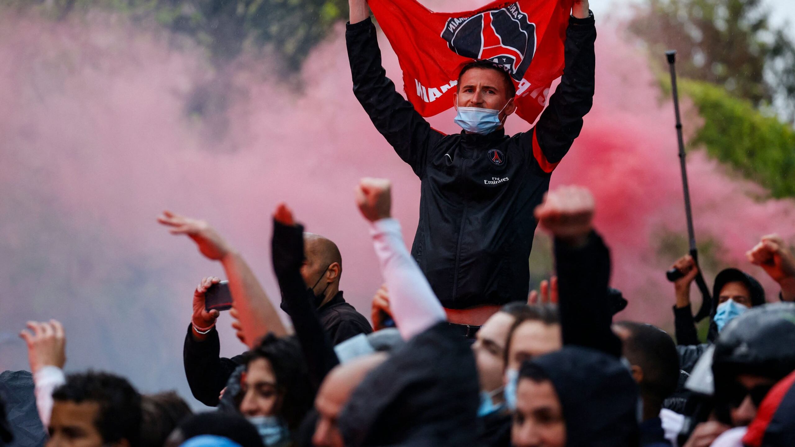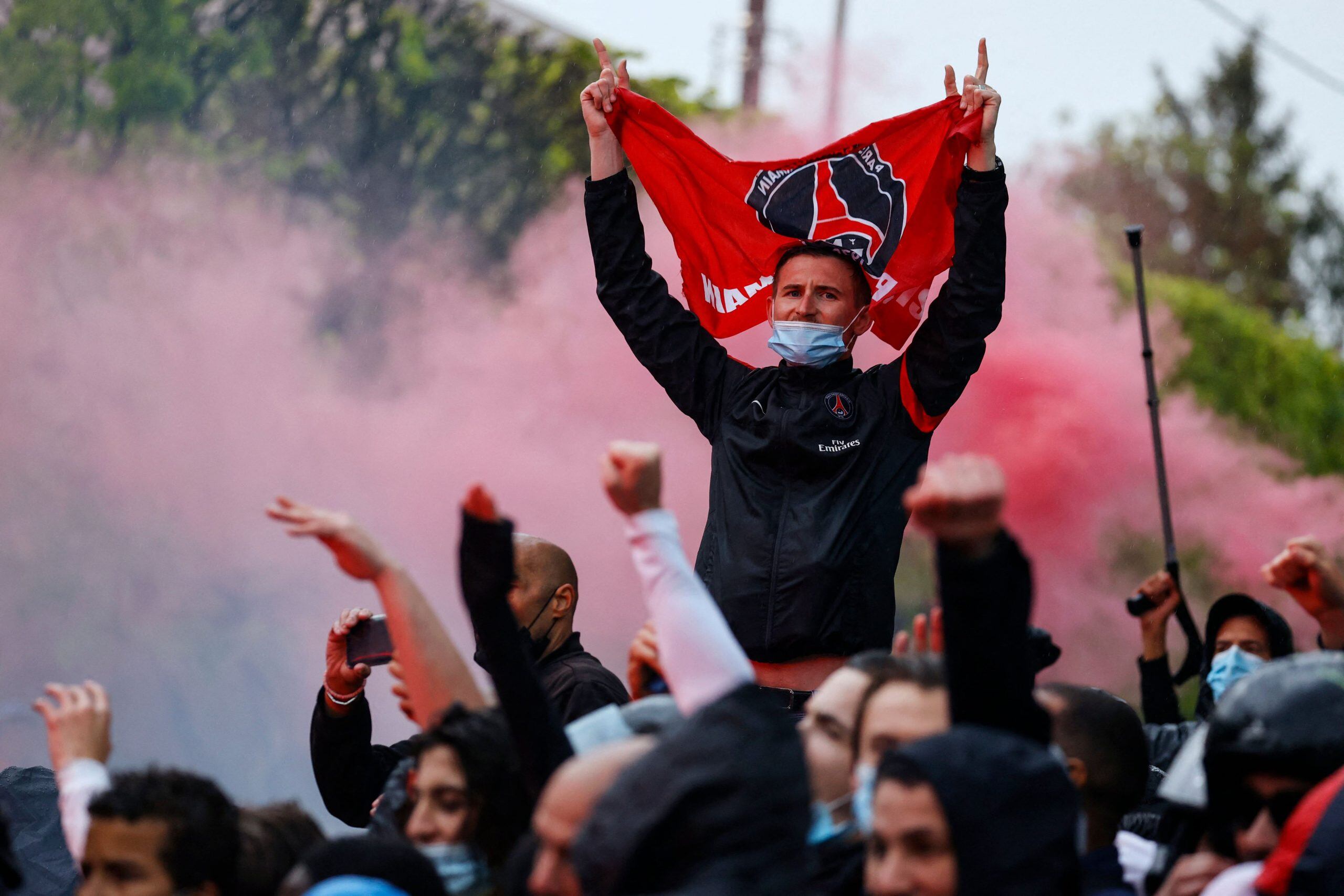 Los aficionados del Paris Saint-Germain se han desbocado en apoyo a su equipo, que esta tarde enfrenta al Manchester City en la ida de las semifinales de la Champions League.
