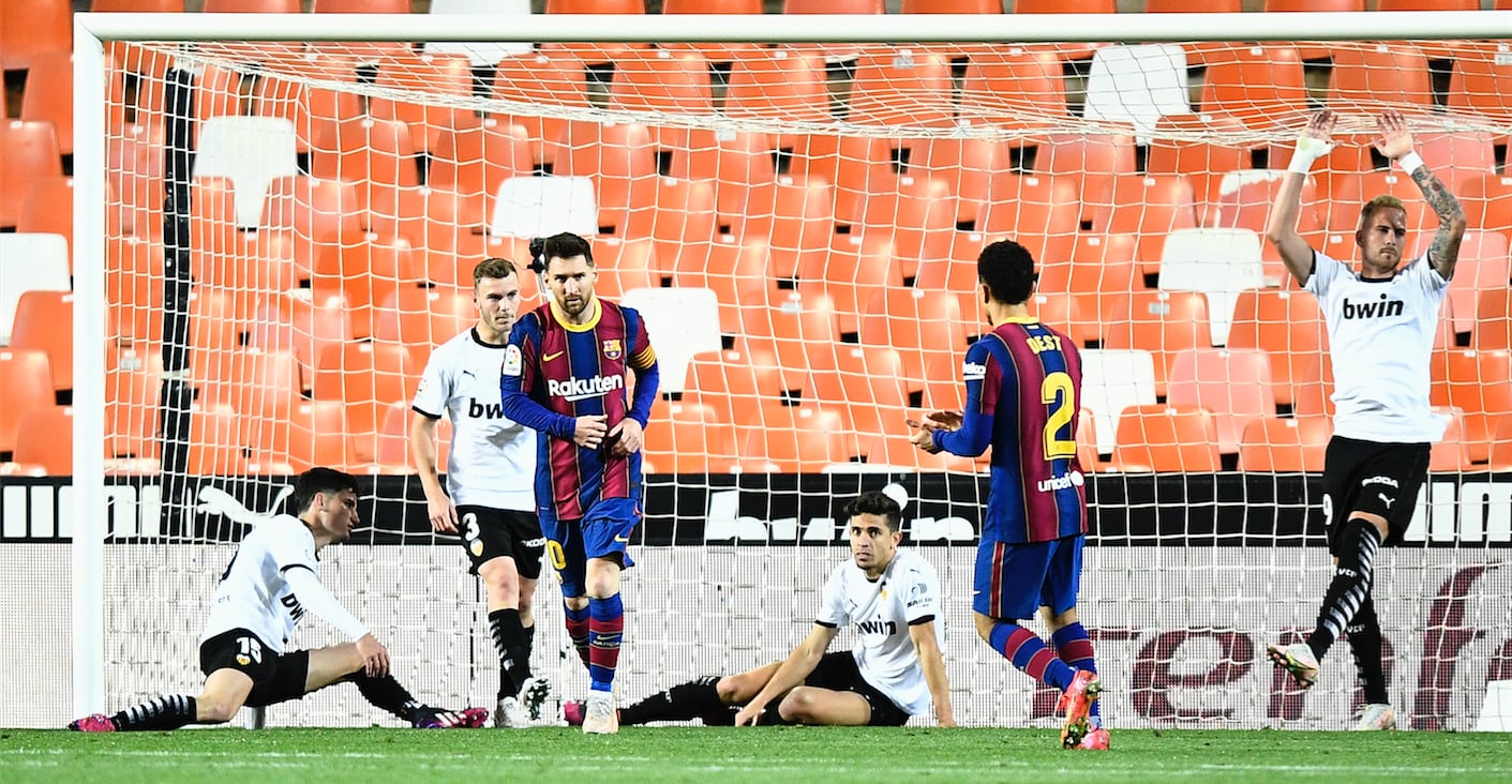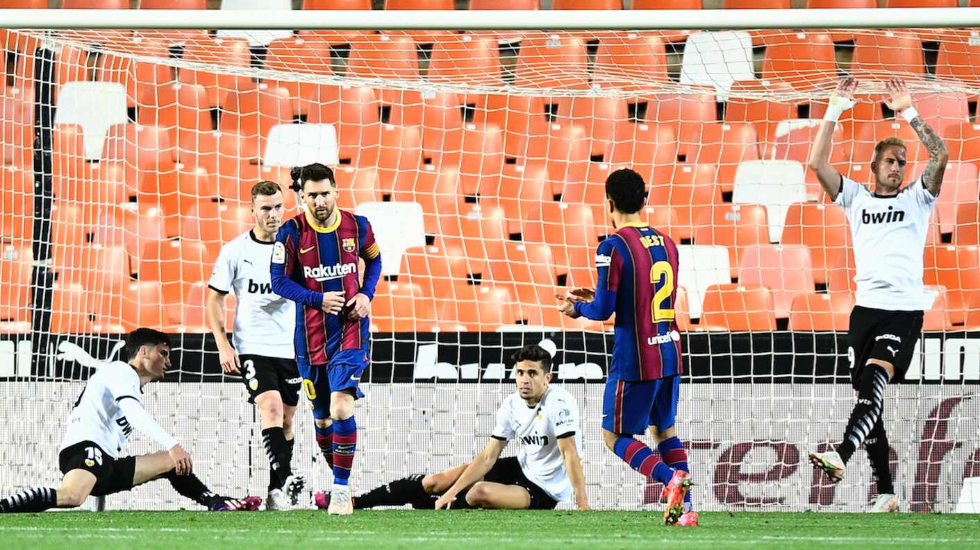Gabriel Paulista abrió el marcador de cabeza (50) para el Valencia, pero Leo Messi equilibró (58), Antoine Griezmann hizo el 2-1 (63), Messi repitió de falta (69) y Carlos Soler puso el 3-2 (83), que mantiene al Barça en la tercera posición de la clasificación.