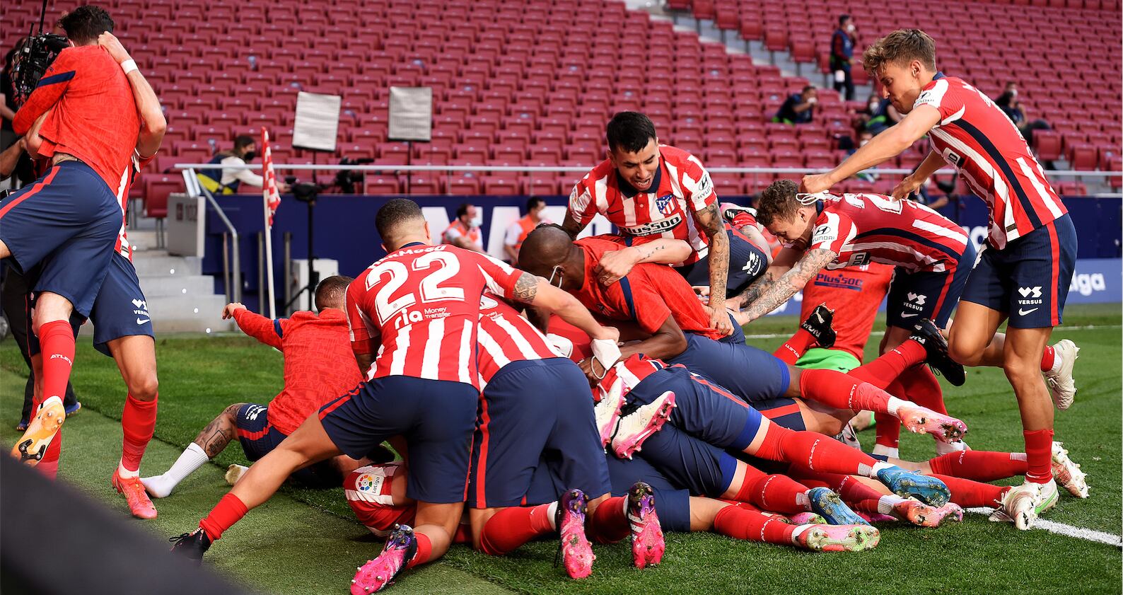 En una remontada de infarto ante el Osasuna, el Atlético de Madrid pudo retener el liderato y está muy cerca de ser el campeón de la Liga española, pero el Madrid también ganó y aún tiene posibilidades de ganar el título. Por su lado, el Barcelona perdió en casa y se quedó con las manos vacías.