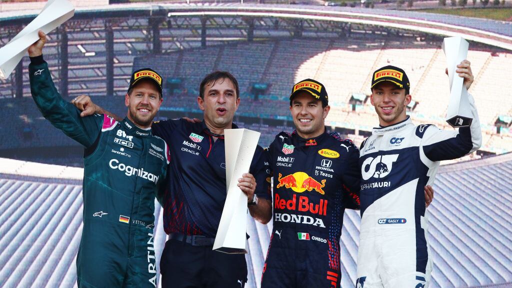 Venció el ‘Checo’, secundado por un veterano como Vettel, 11º en la parrilla de salida, premiado en su original estrategia de cambiar los neumáticos tarde, y por Gasly, que tuvo que sujetar a Leclerc, cuarto, y al británico Lando Norris (McLaren), quinto