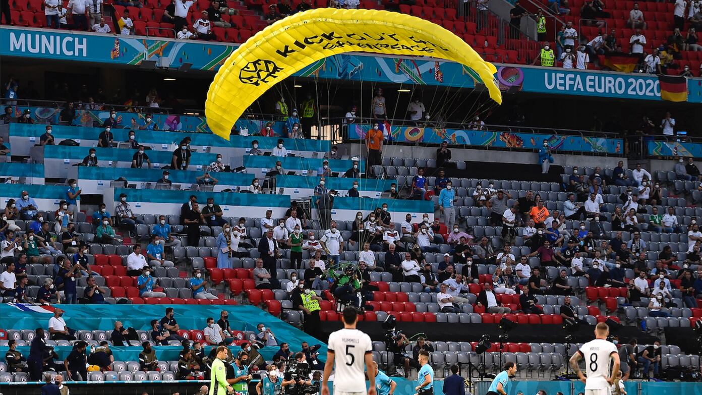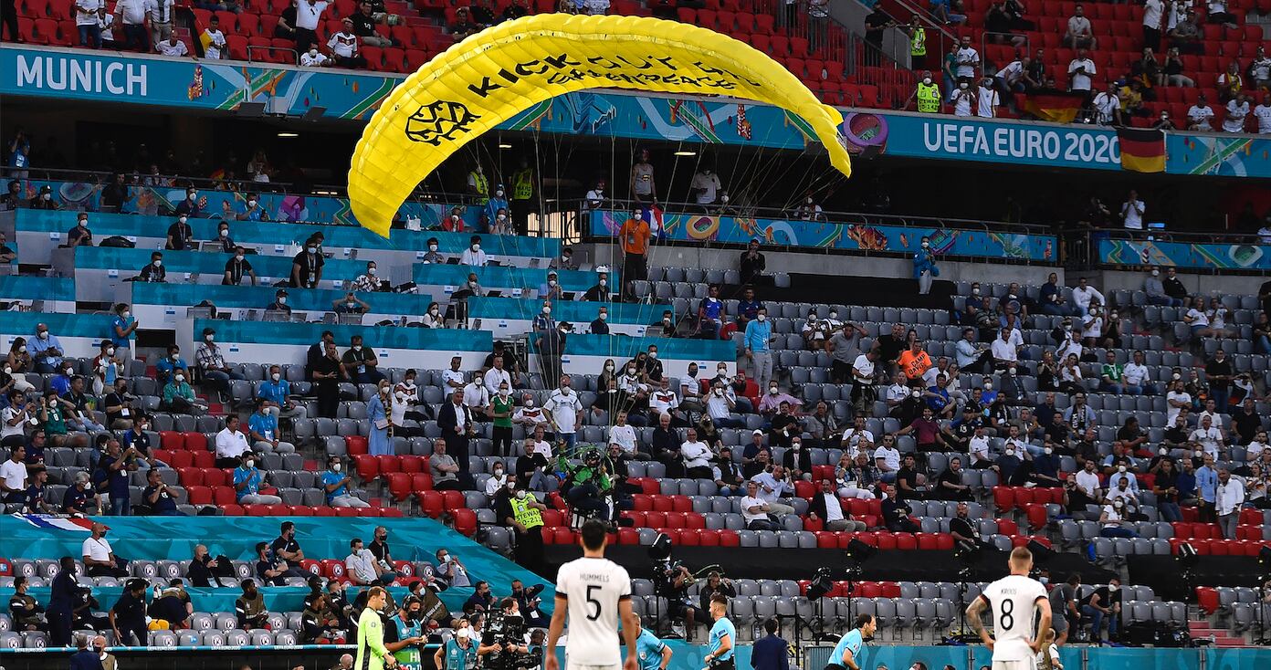 La UEFA se pronunció por el incidente que provocó un activista de la asociación ecologista Greenpeace que se estrelló contra la afición, en el estadio de Múnich, dejando varios heridos previo al partido entre Francia y Alemania por la Eurocopa. El hombre sobrevolaba en una especie de ultraligero.
