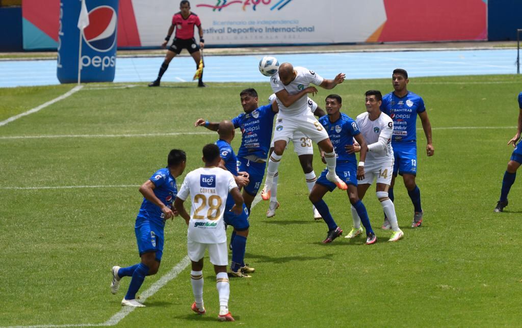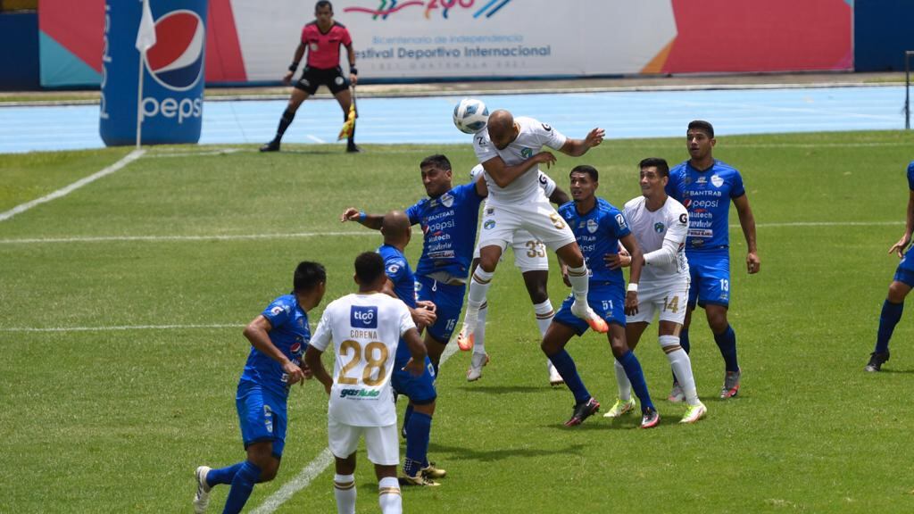 Ambos equipos se mostraron ambiciosos en los primeros minutos del partido, pero Cobán estuvo más cerca de abrir el marcador con remates de Víctor Matta y Maximiliano Lombardi, mientras que los albos intentaban por medio de Juan Anangonó y Junior Lacayo.