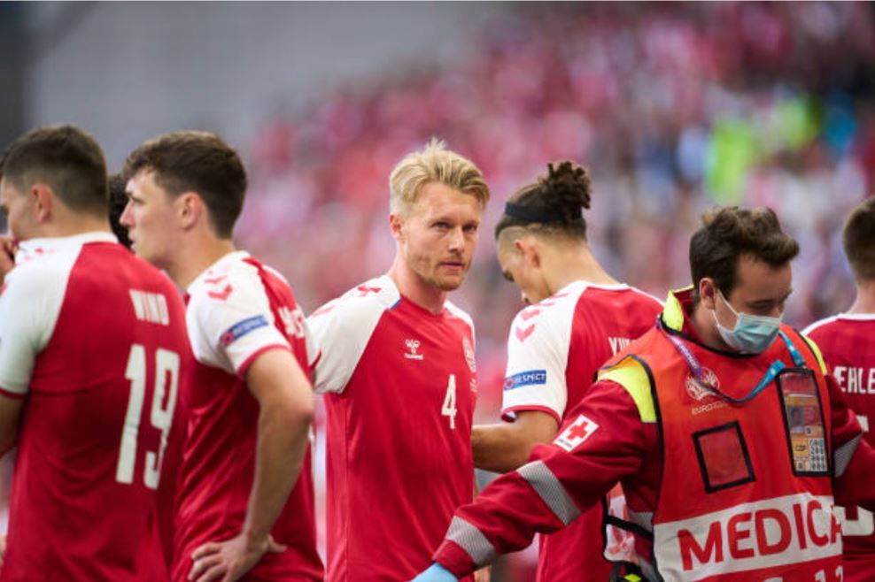 Equipo médico del equipo danés: Morten Skjoldager (fisioterapeuta acompañante del médico del equipo), Morten Boesen (médico del equipo), Simon Kjaer (capitán de la selección de Dinamarca).