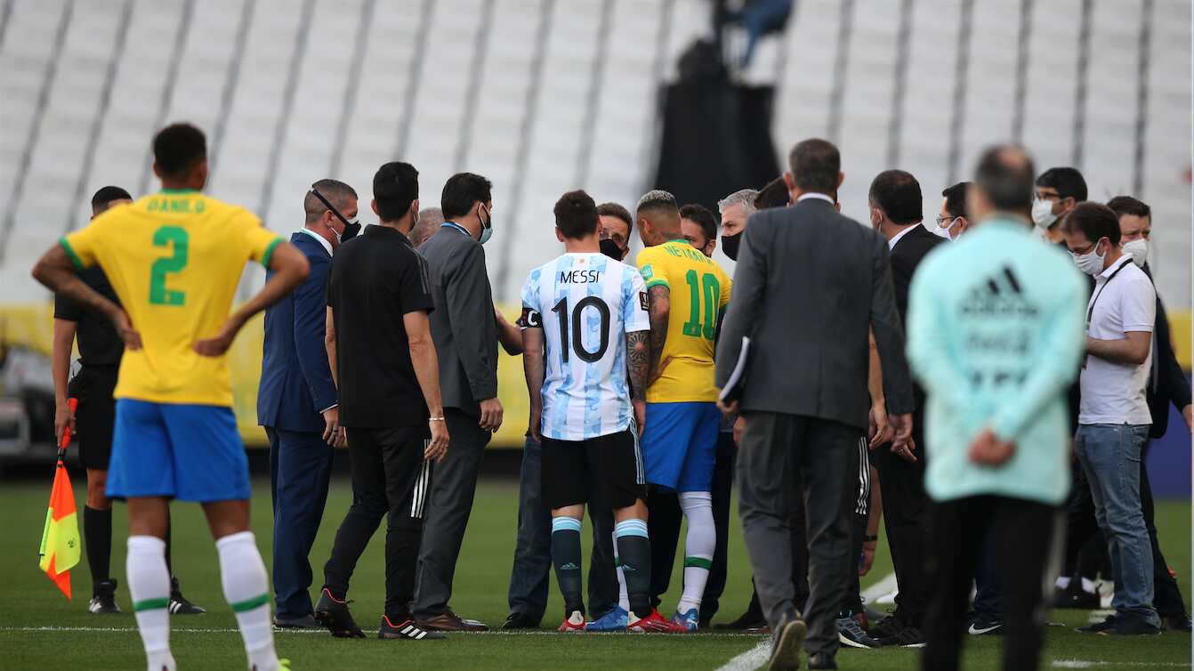 Los jugadores de Argentina, con Lionel Messi a la cabeza, abandonaron la cancha en pleno clásico luego del ingreso de funcionarios de la Anvisa que buscan hacer cumplir una orden de deportación de cuatro futbolistas argentinos que militan en clubes de la Liga Premier inglesa.