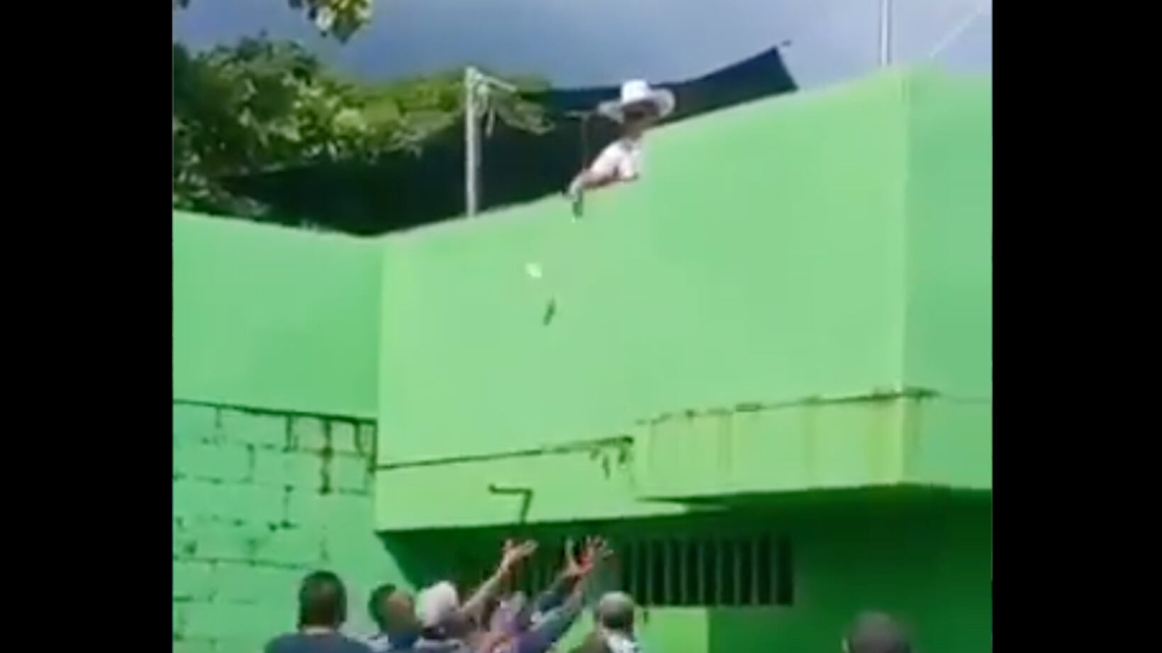 Varias personas corrieron hacia donde se encontraba el alcalde de Santa Lucía Cotzumalguapa, Romeo Ramos, para ver si podían atrapar alguno de los billetes que lanzaba, mostrando su felicidad por el triunfo de su equipo sobre Comunicaciones.