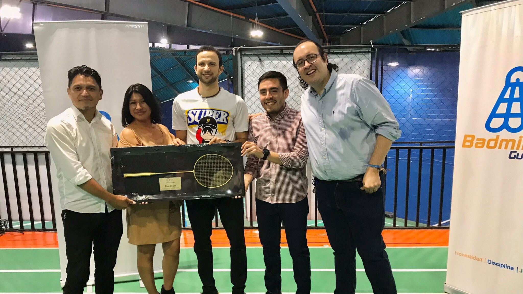 Las instalaciones de la Federación de Bádminton en la zona 5 fueron el escenario en el que Kevin recibió un cheque, con fondos recaudados por este movimiento, y una raqueta dorada como símbolo de su logro en los juegos.