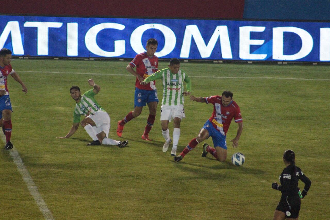 Ambos equipos no tuvieron su mejor noche en la delantera, las caídas a la banda que hacía Romario en la Antigua no generaron peligros claros y Javier “el Chuletita” Orozco quien era acompañado por Juan Barrera no tuvieron oportunidad de penetrar la saga antigüeña.