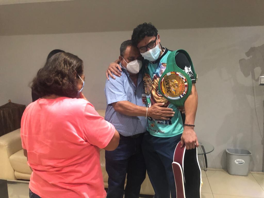 “Sufrimos de principio a fin así como él sufre, lo único que nosotros no recibimos golpes, pero si nos pone nerviosos, siempre tenemos fe en Dios y seguridad a como él ha entrenado, sabíamos que le iba a costar, pero todo salió bien”, señaló don Hermelindo.
