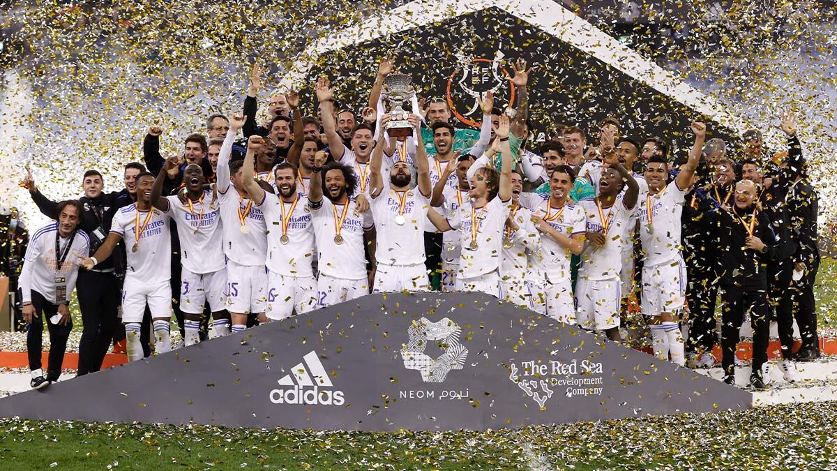 Tras vencer por 2-0 al Athletic de Bilbao el Real Madrid celebró tras ganar su primer título del año, la Supercopa de España, en el Estadio Rey Fahd, de Riad, Arabia Saudita.