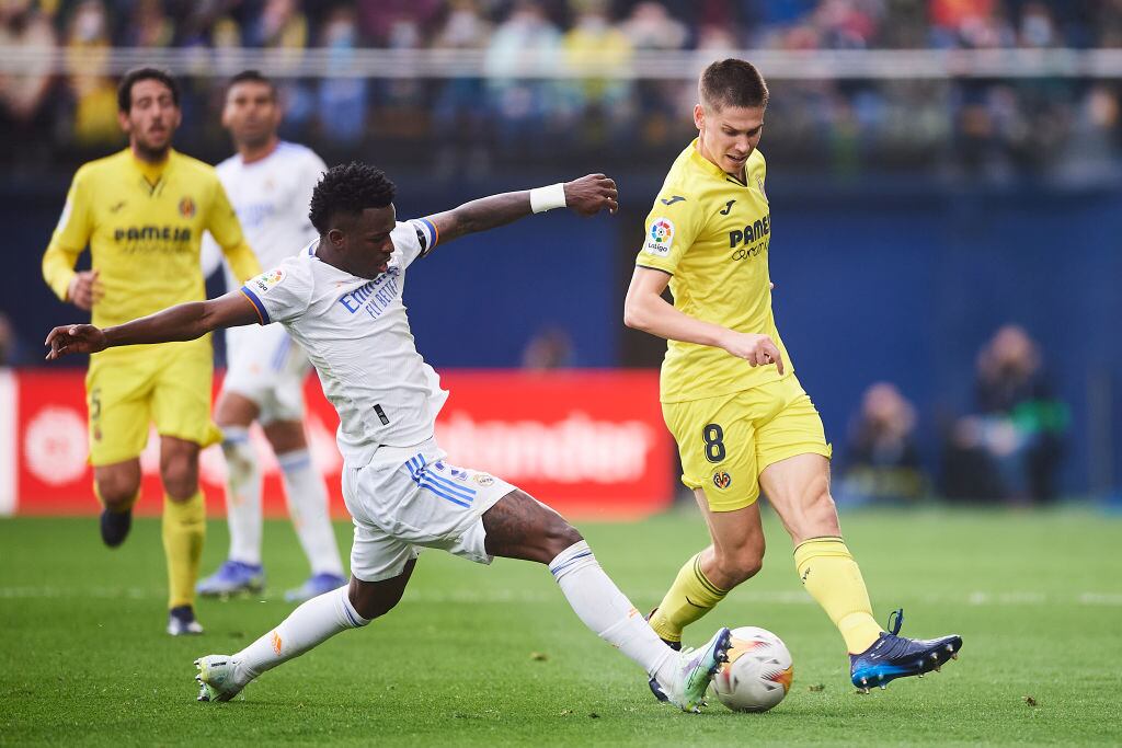 Luego de una ida y vuelta constante, pero con mayor dominio del Villarreal, el cuadro local tuvo su jugada más clara en la primera parte. Una buena jugada entre Lo Celso y Parejo dejó frente al arco a Danjuma, el primer remate del neerlandés fue detenido en primera instancia por Alaba, pero su rebote si fue bien rematado y al 19 estrelló el balón en el poste.