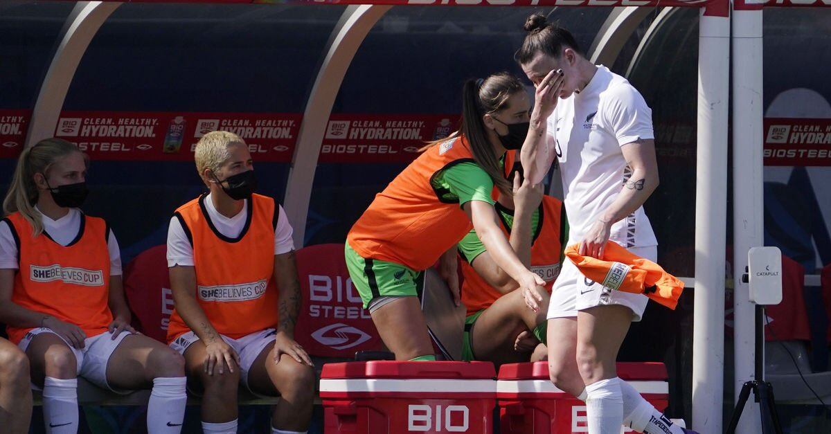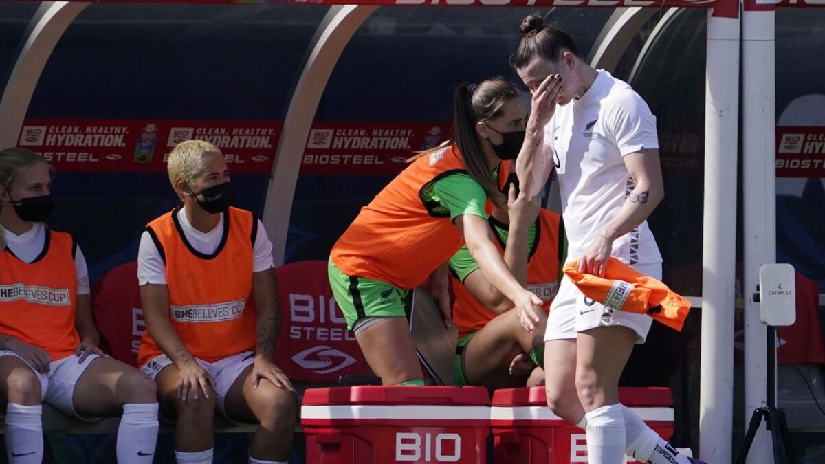 Moore, de 25 años, se quedó unos segundos doblada hacia delante y pronto fue retirada del campo y consolada en la banda por sus compañeras.