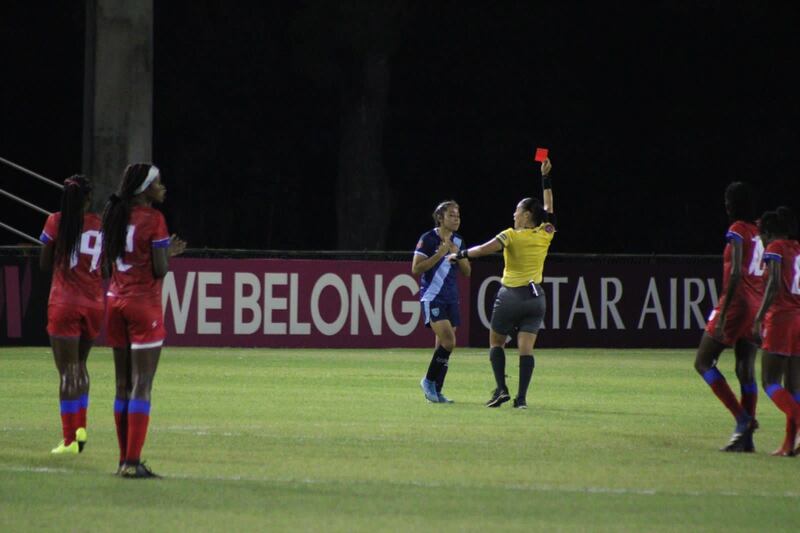 Pero el tanto de las haitianas no fue lo único malo para la bicolor, pues en el 45+3’ se quedó con una menos tras la expulsión de Lesly Ventura por una falta sobre Valentina Ornis. Así, se fueron al descanso.