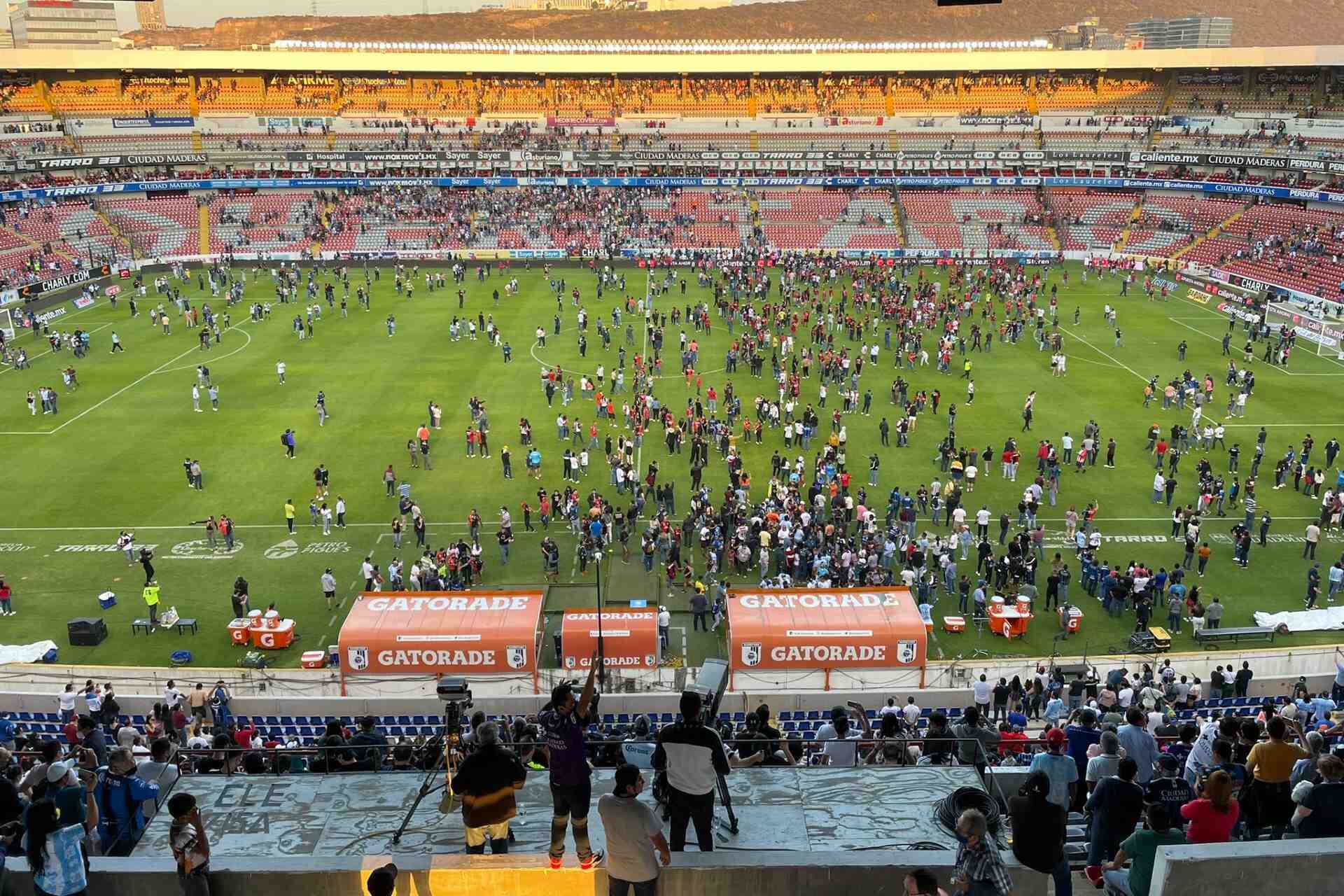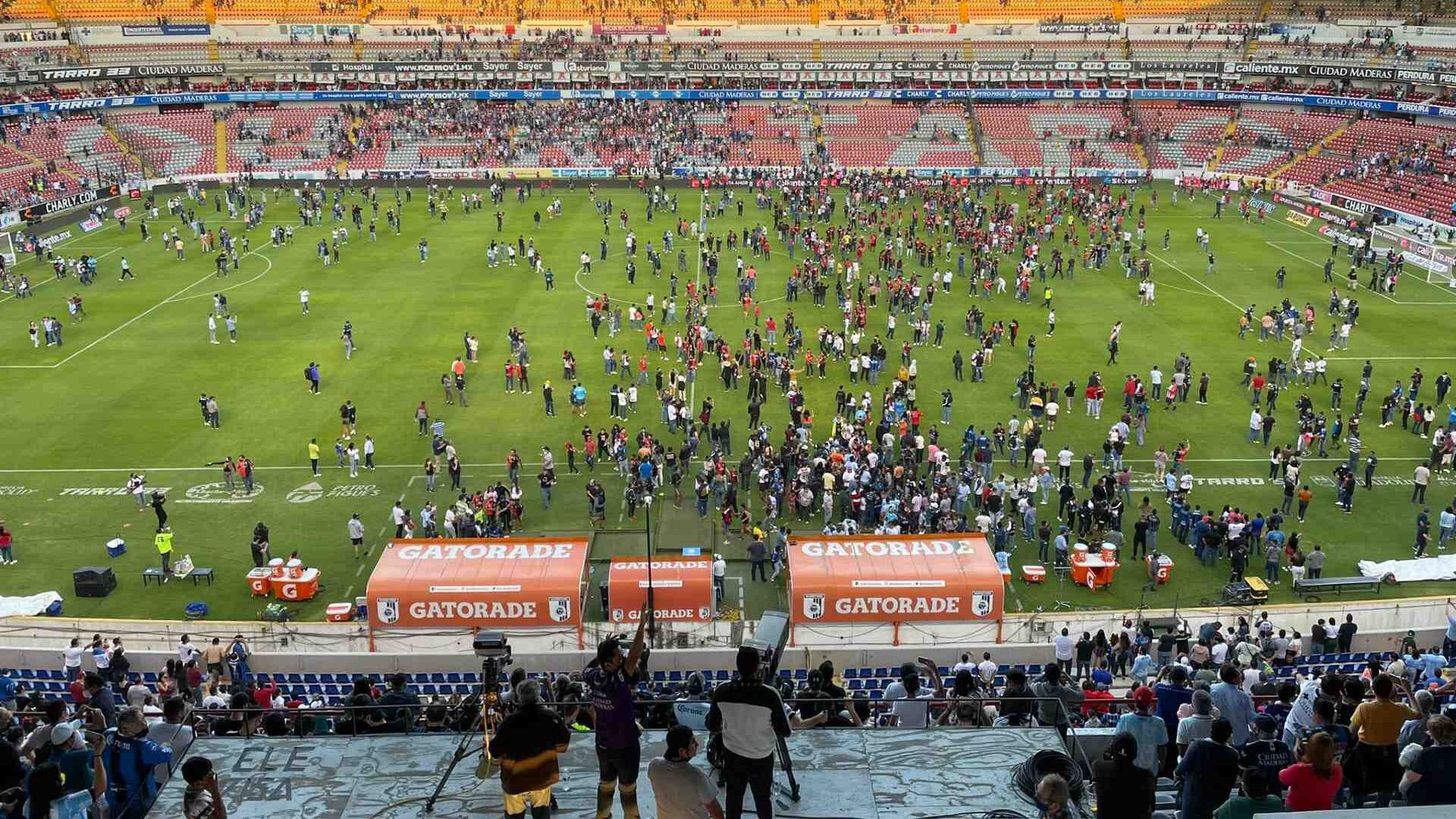 Por la invasión, el juego se detuvo de inmediato, los futbolistas se dirigieron a la zona de vestidores y la cancha comenzó a llenarse de gente; algunas personas, entre ellas familias con niños, buscaban ponerse a salvo mientras otras llevaron la violencia al terreno de juego con más intercambios de golpes.
