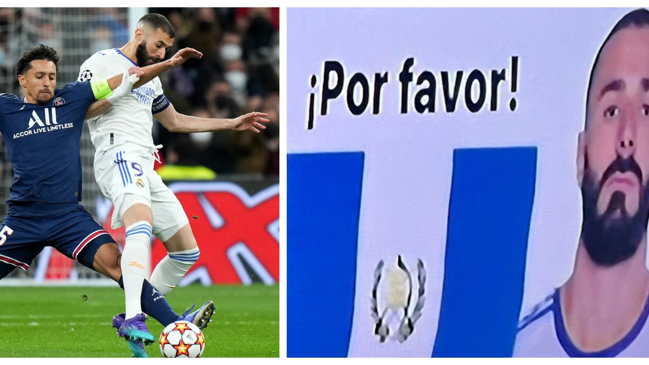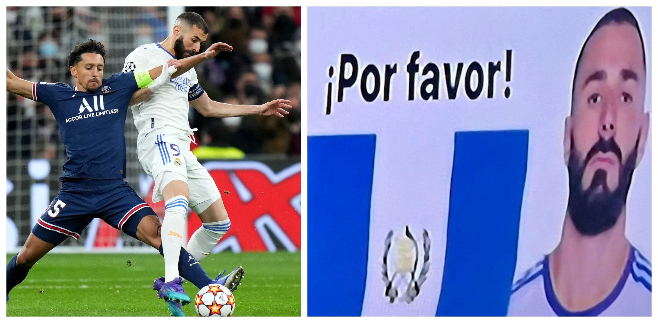 “Benzema y Marcelo cruzamos el Atlántico por su camiseta. ¡Por favor!”, decía la pancarta que fue captada por una de las cámaras de las televisoras internacionales que transmitían el encuentro. En la pancarta se observan los rostros de Marcelo y Benzema con la bandera de Guatemala en medio.
